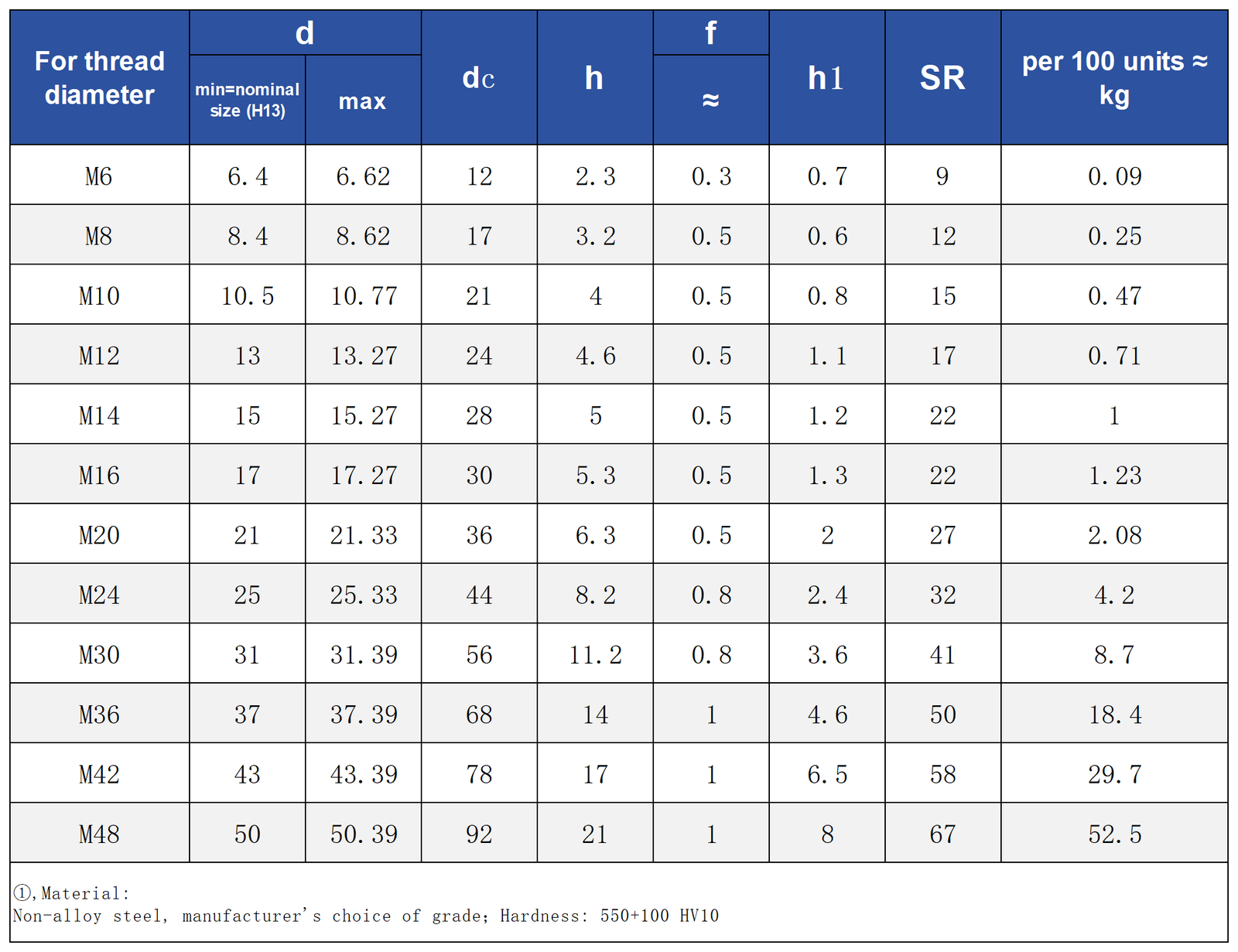 DIN 6319 spherical washers consist of a mating pair: the concave washer (Type C) and the convex washer (Type D). They are designed to compensate for angular misalignments between the bolt axis and the bearing surface, ensuring uniform load distribution and preventing bolt bending or stress concentration. They are especially suitable for applications requiring precise fastening and load compensation.