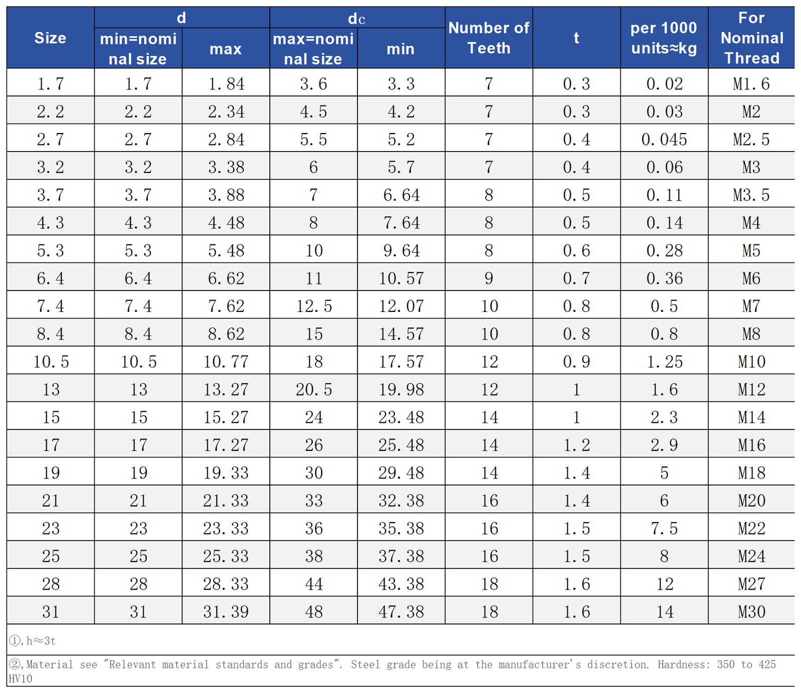 The standard size range covers M1.6-M30, manufactured in accordance with DlN6798 J, with non-standard customization available upon request.